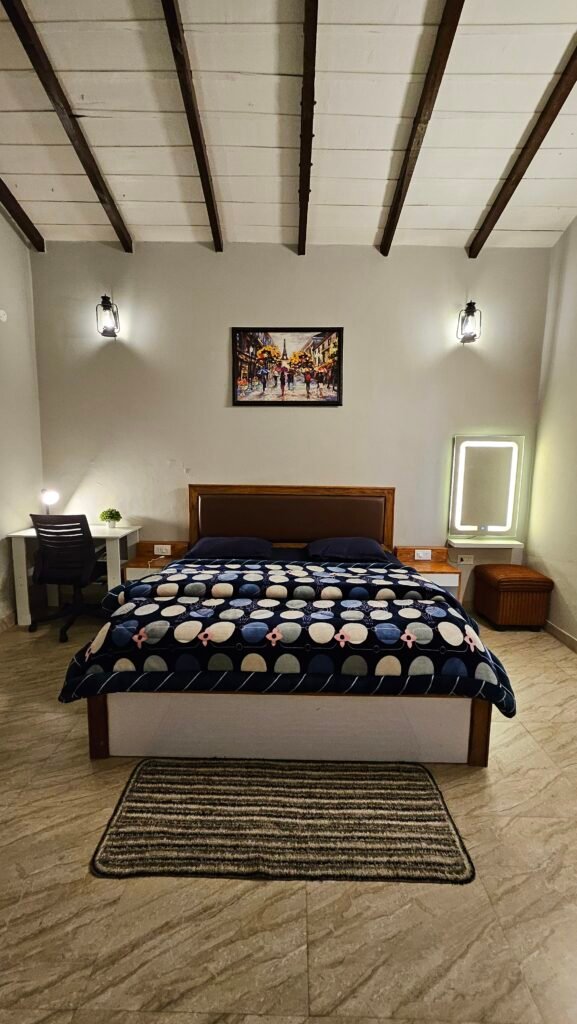BEDROOMS: Indulge in comfort and luxury with our three beautifully appointed bedrooms, each featuring its own attached washroom and modern amenities. You’ll find everything you need for a convenient and comfortable stay, including a hair dryer, makeup mirror, and a dedicated workspace in each room. Need additional sleeping space? No problem! Upon request, we can provide extra beds, ensuring that everyone in your group has a cozy spot to rest their head.